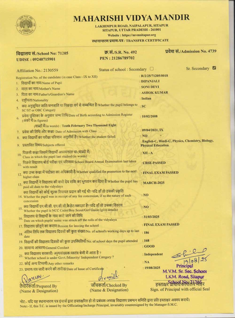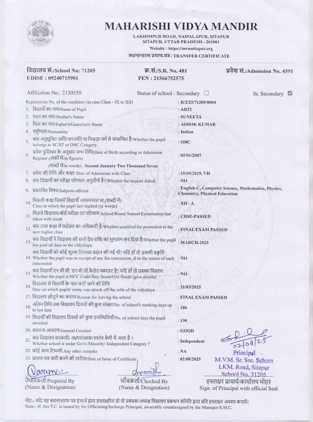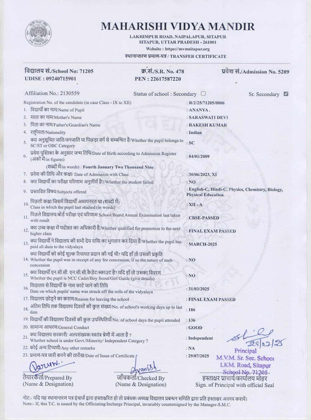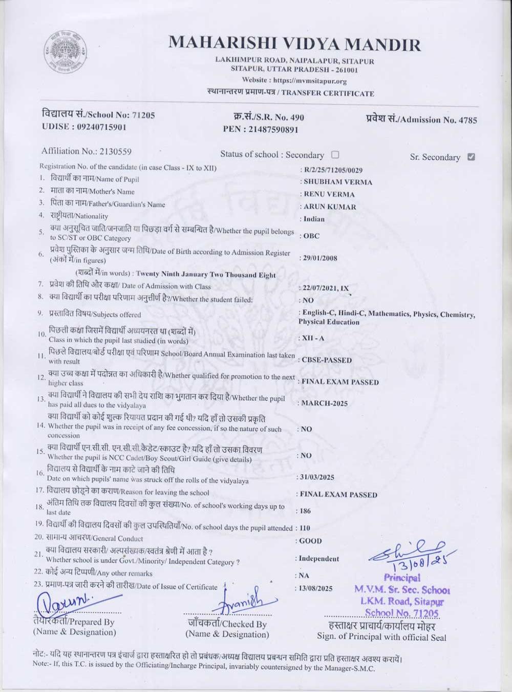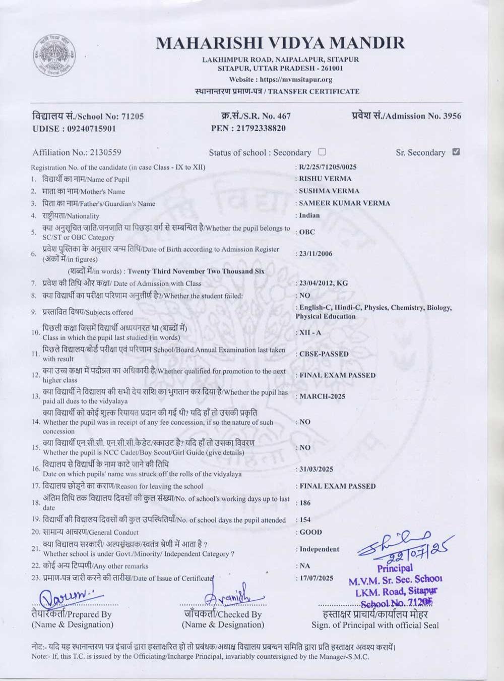 | 25 | 3956 | RISHU VERMA | XII | A | |