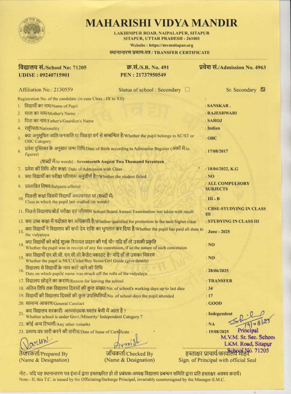| 39 | 4794 | REYANSH SHUKLA | III | A | |