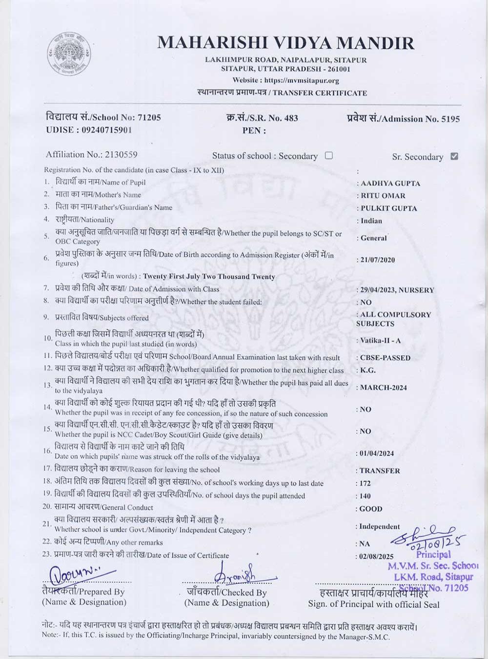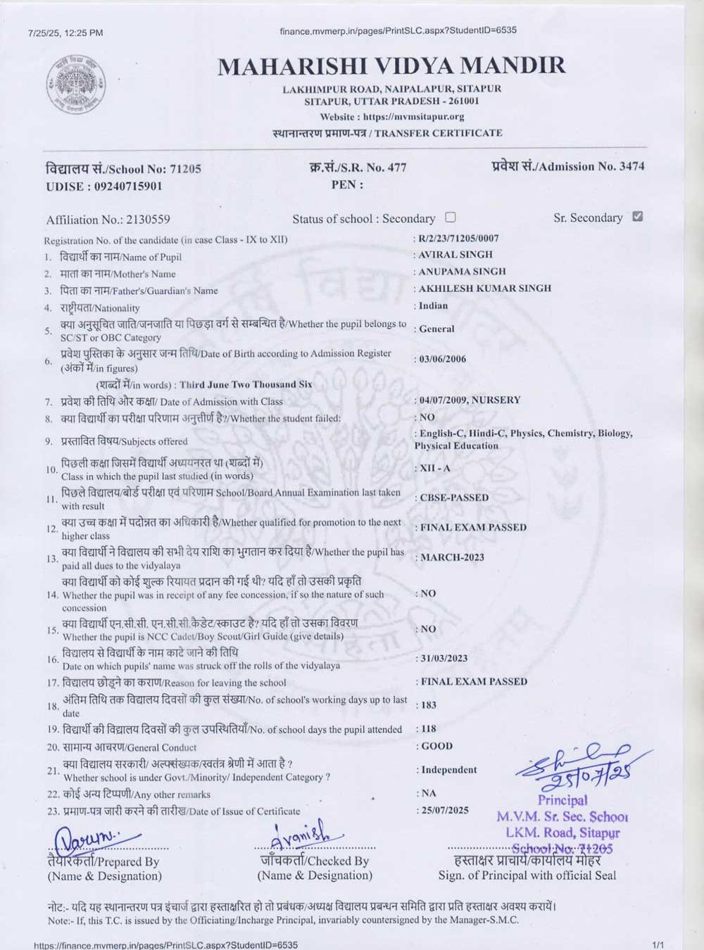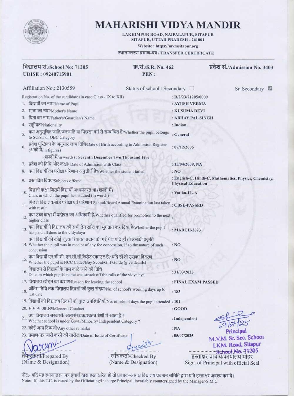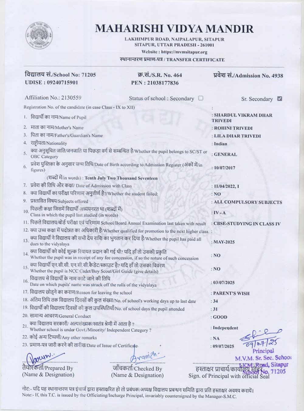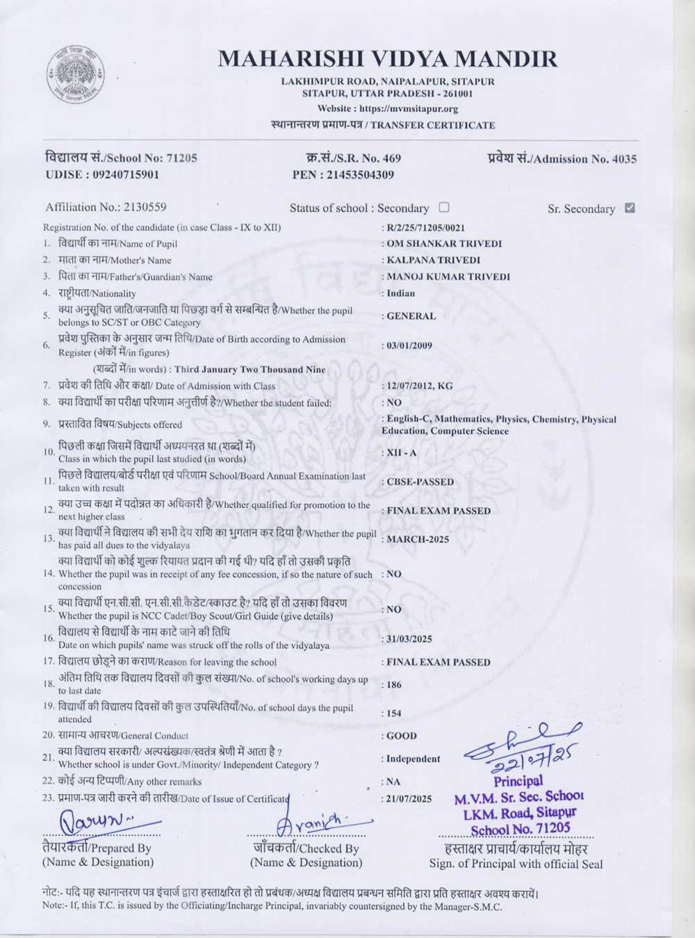 | 23 | 4035 | OM SHANKAR TRIVEDI | XII | A | |