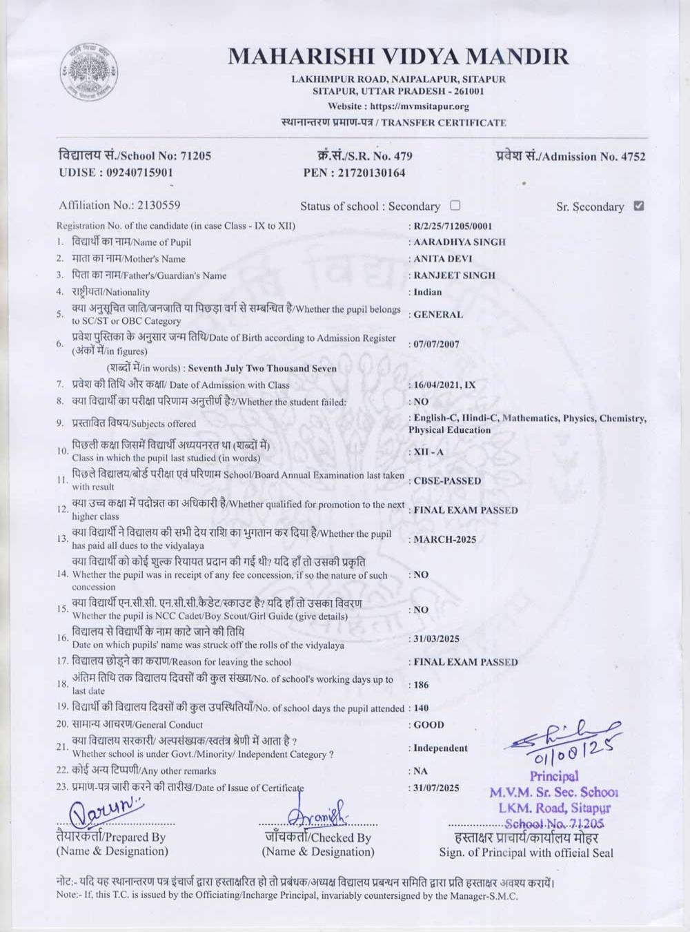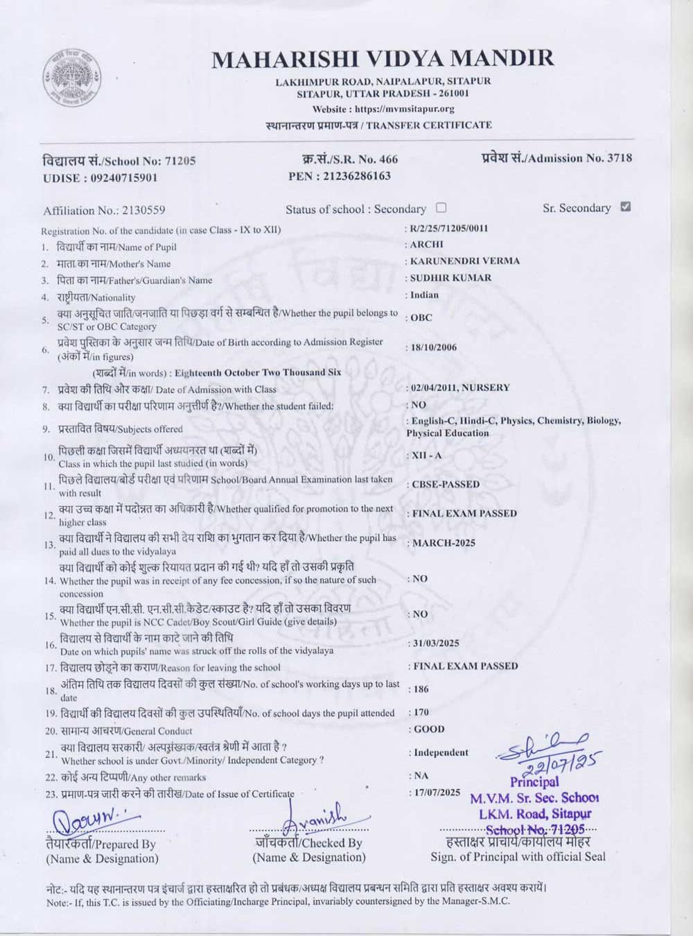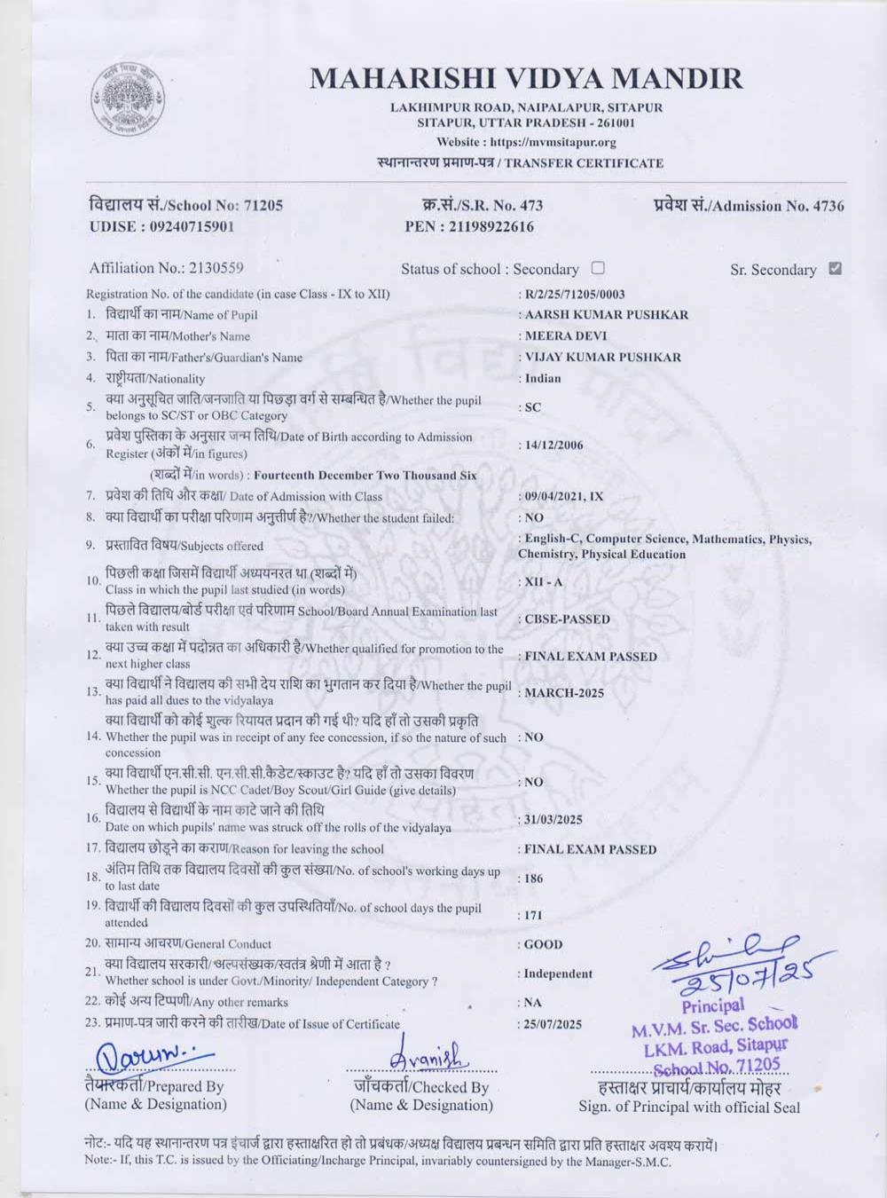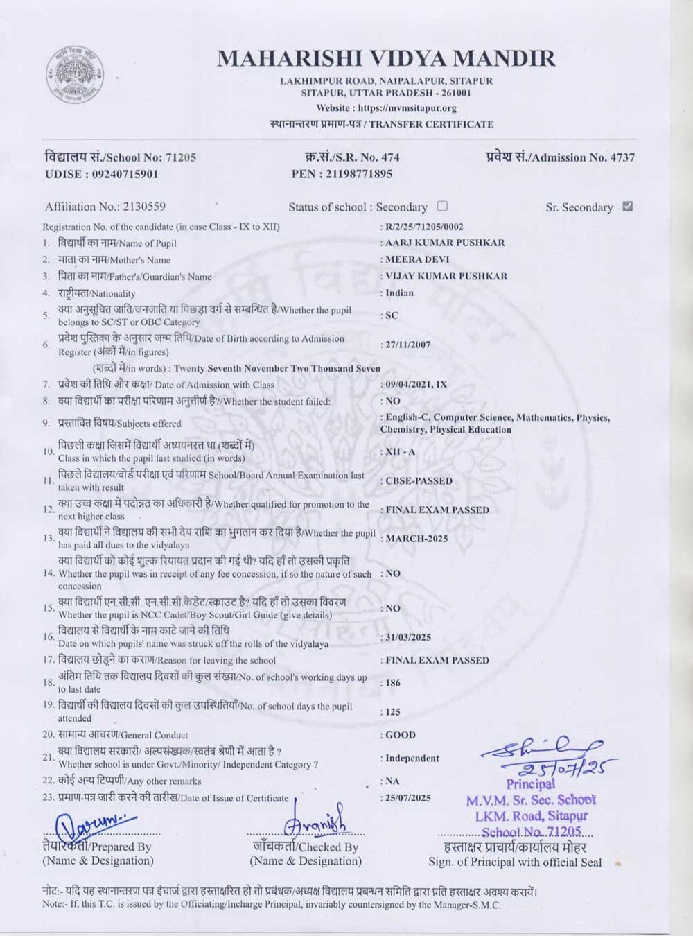 | 18 | 4737 | AARJ PUSHKAR | XII | A | |