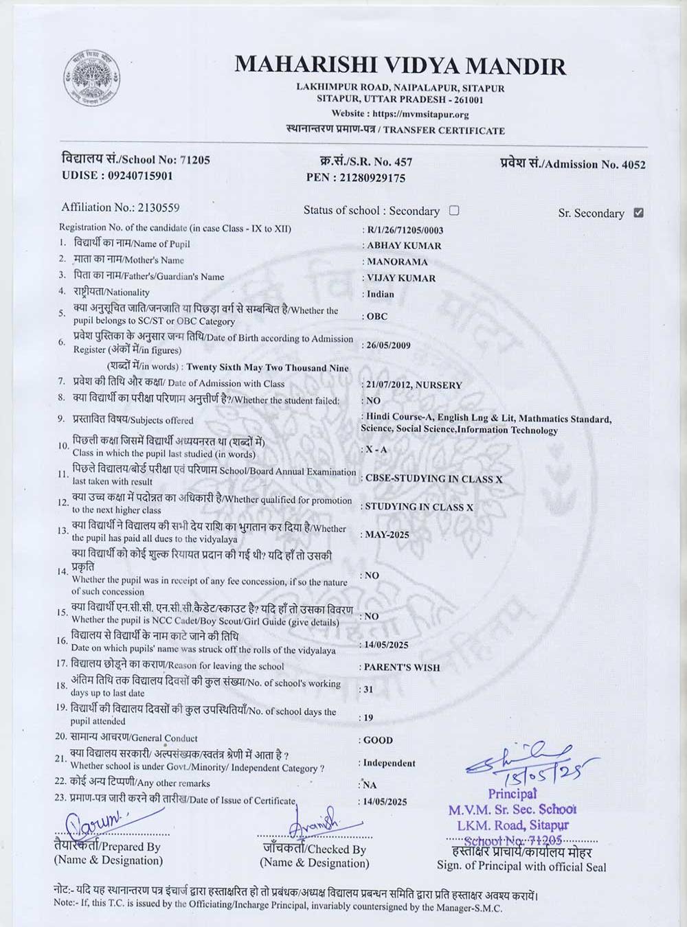 | 35 | 4052 | ABHAY KUMAR | X | A | |
