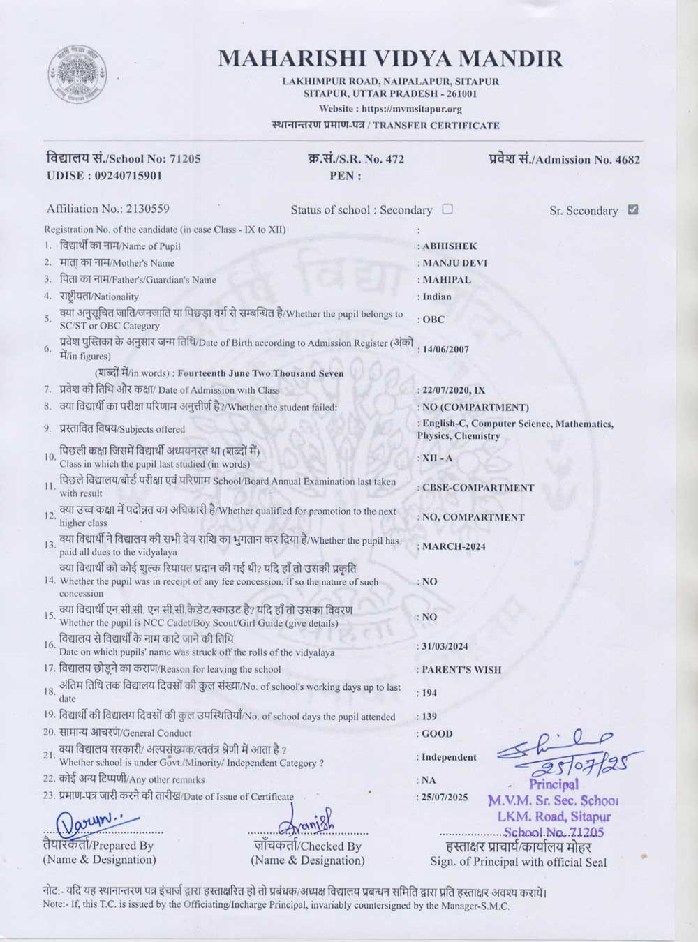 | 53 | 5229 | VIHANSHUKLA | I | A | |