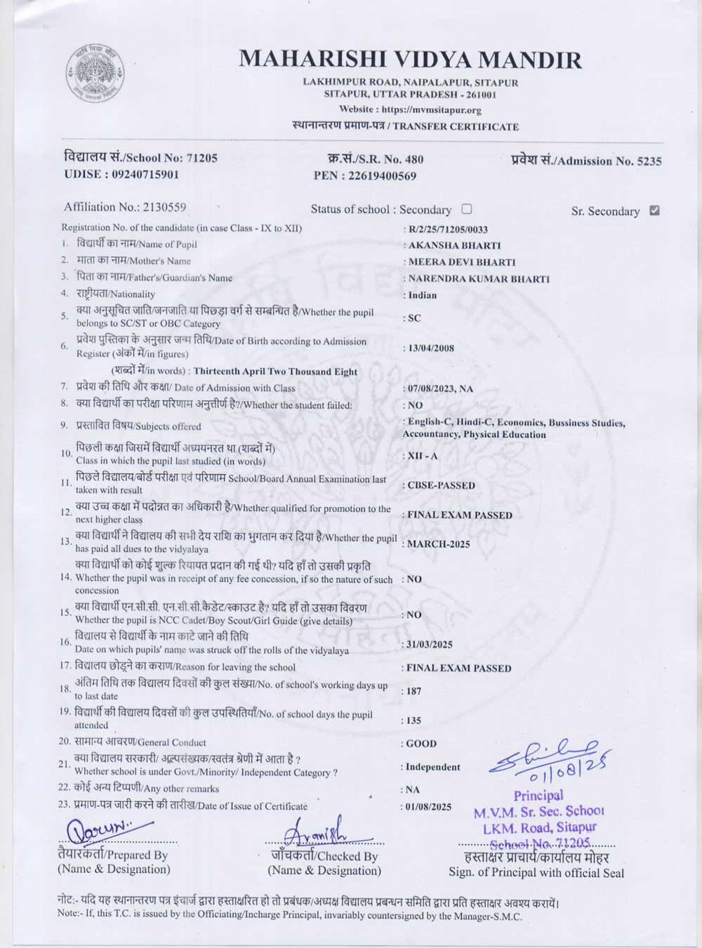 | 12 | 5235 | AKANSHA BHARTI | XII | C | |