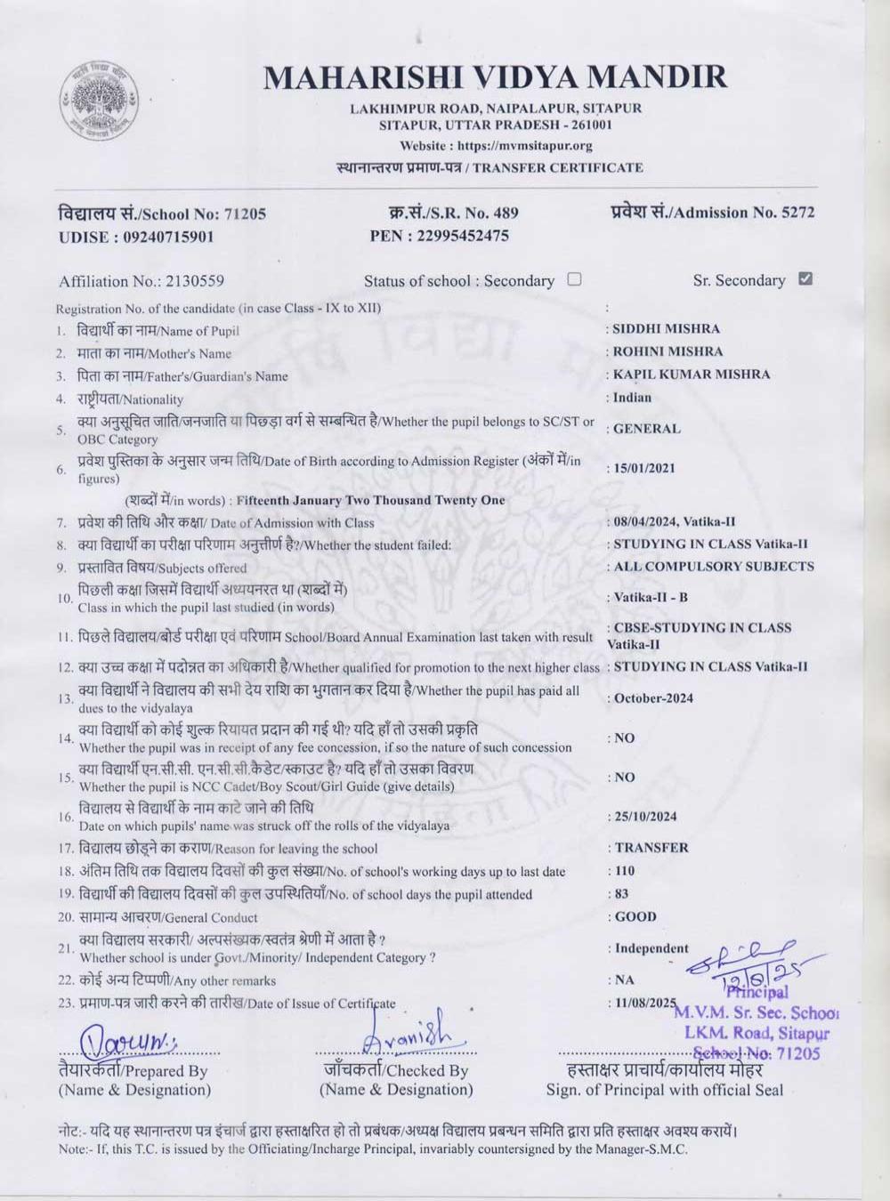 | 4 | 5272 | SIDDHI MISHRA | LKG | B | |