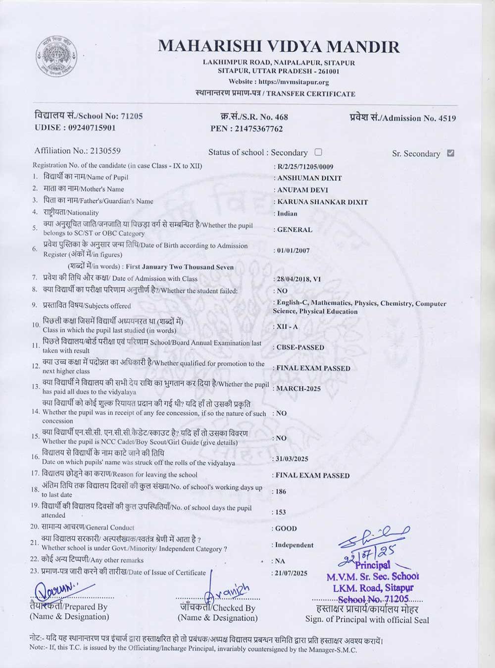 | 24 | 4519 | ANSHUMAN DIXIT | XII | A | |