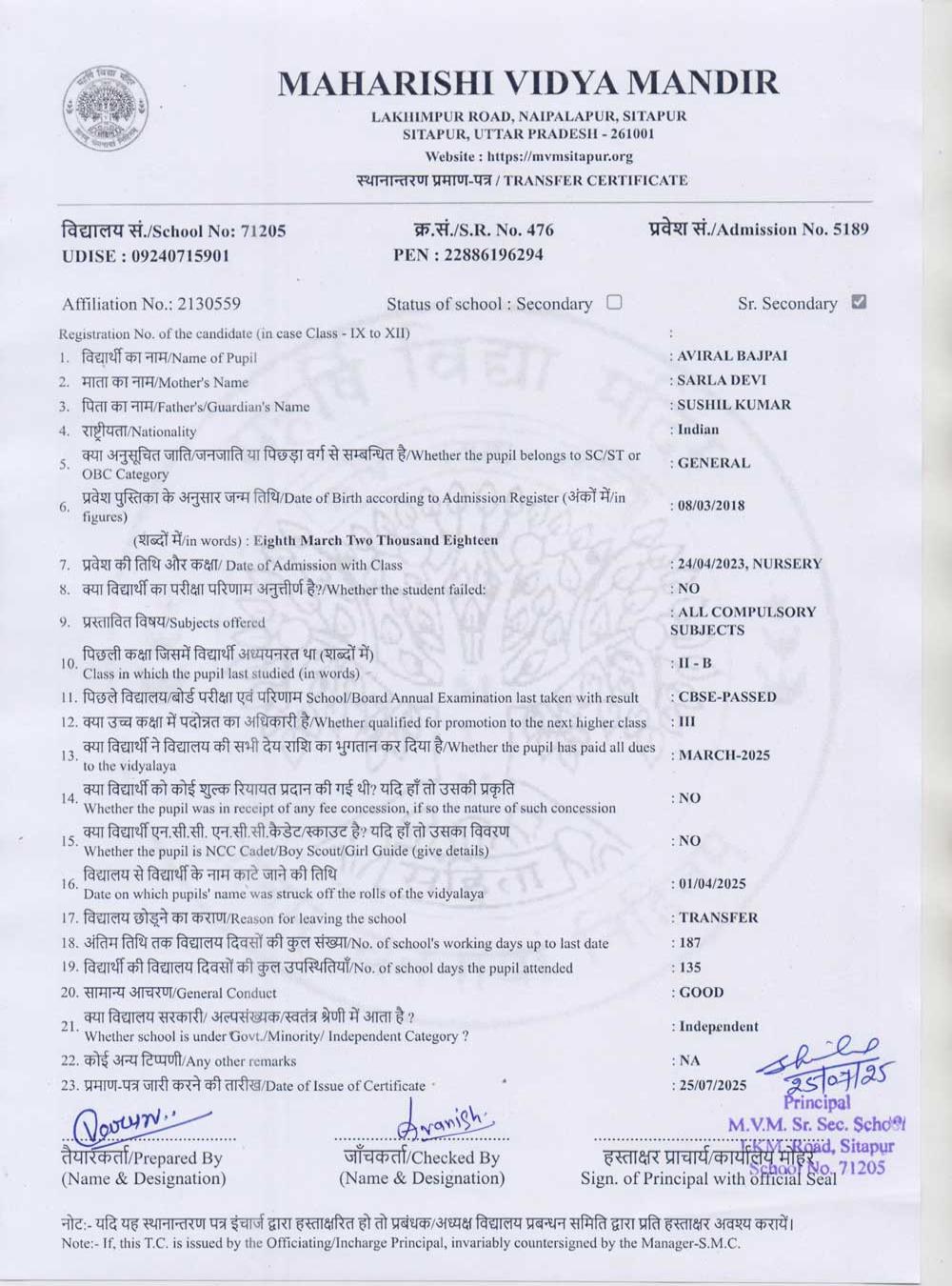 | 16 | 5189 | AVIRAL BAJPAI | III | B | |