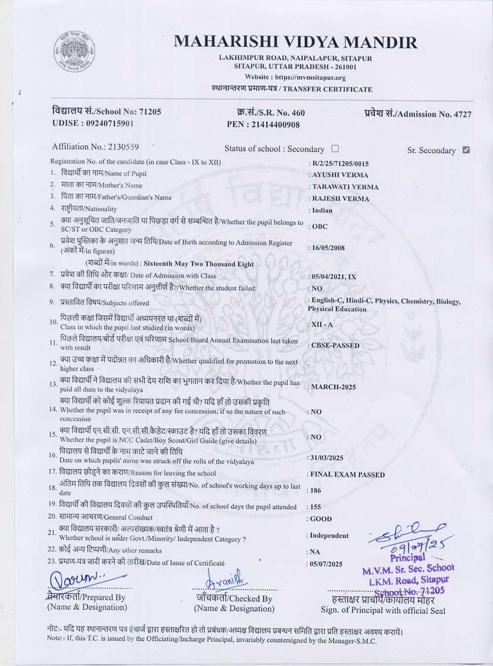 | 32 | 4727 | AYUSHI VERMA | XII | A | |