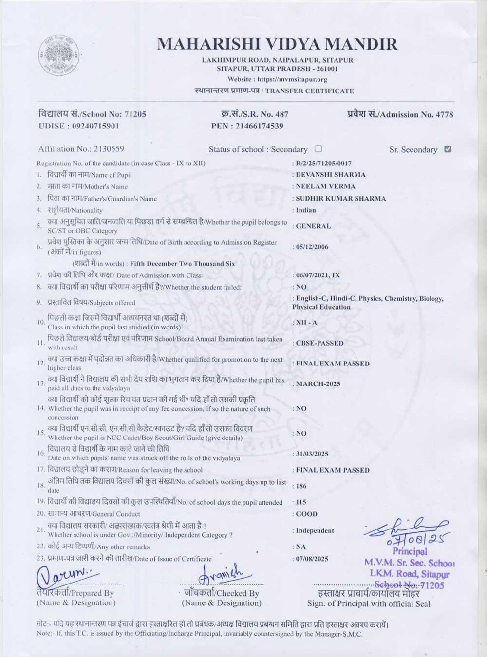 | 6 | 4778 | DEVANSHI SHARMA | XII | A | |