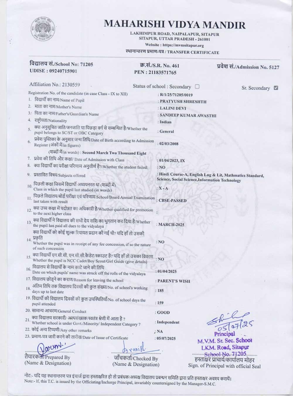 | 31 | 5127 | PRATYUSH SHRESHTH | XI | A | |