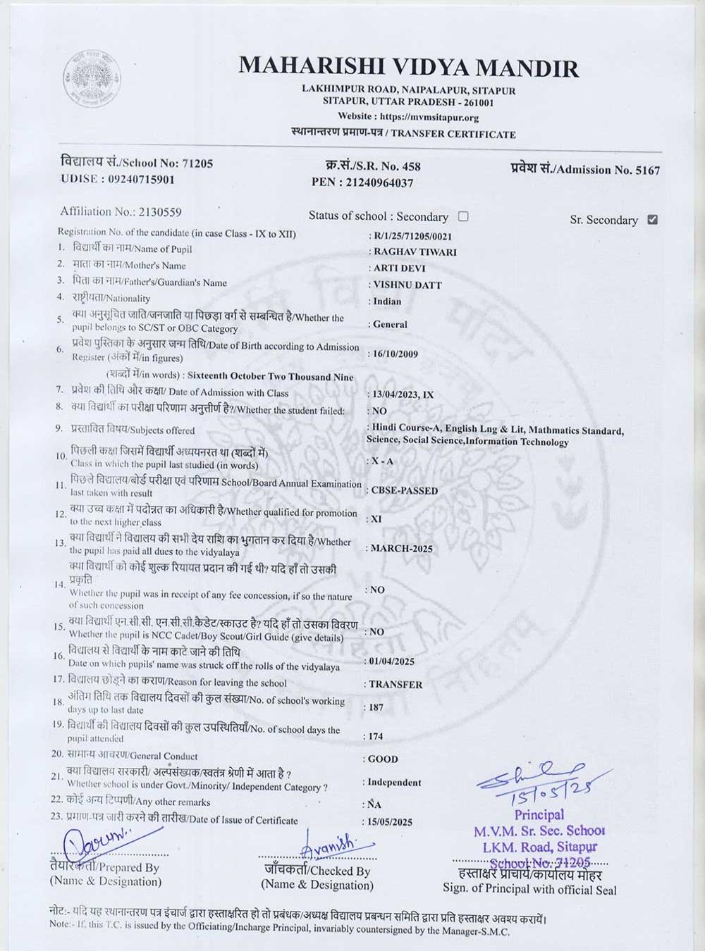 | 34 | 5167 | RAGHAV TIWARI | XI | A | |