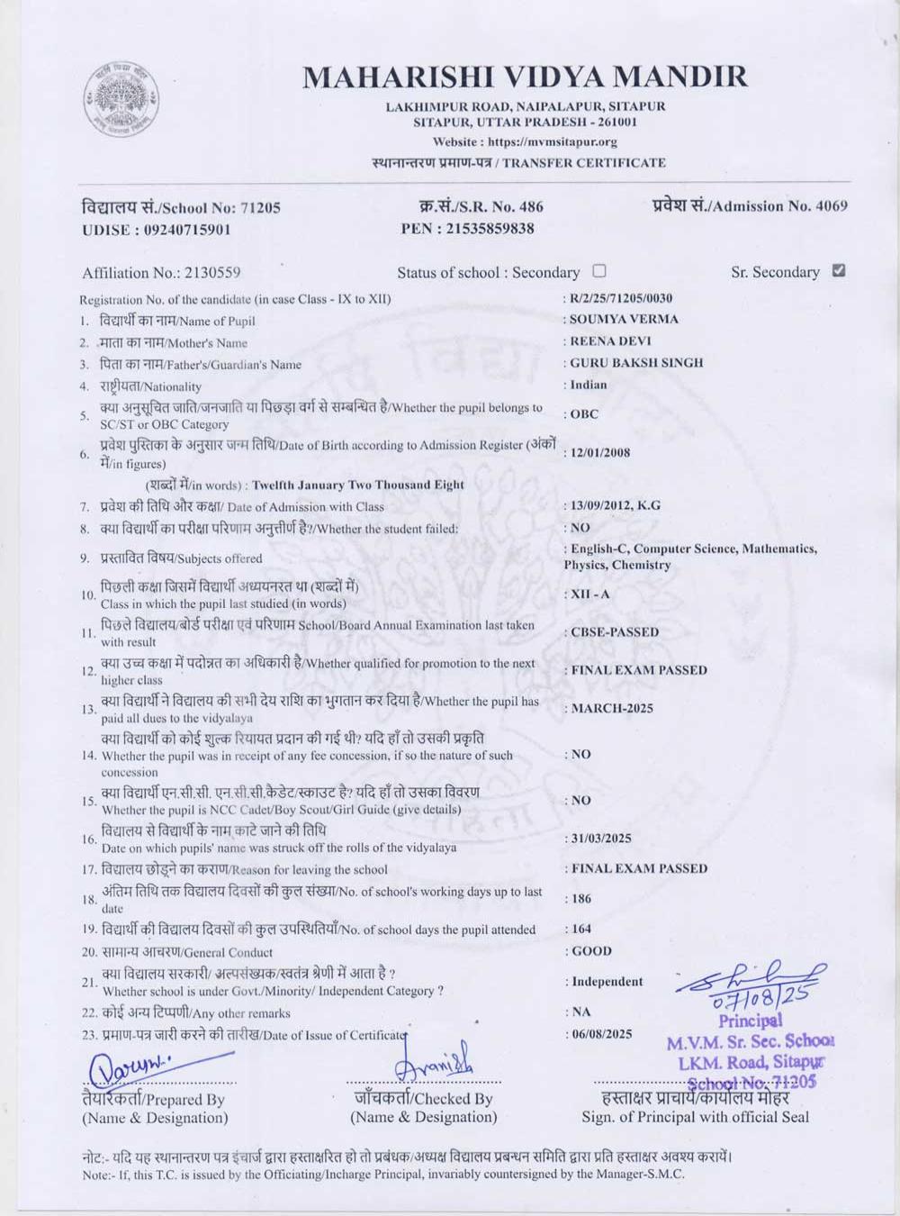 | 7 | 4069 | SOUMYA VERMA | XII | A | |