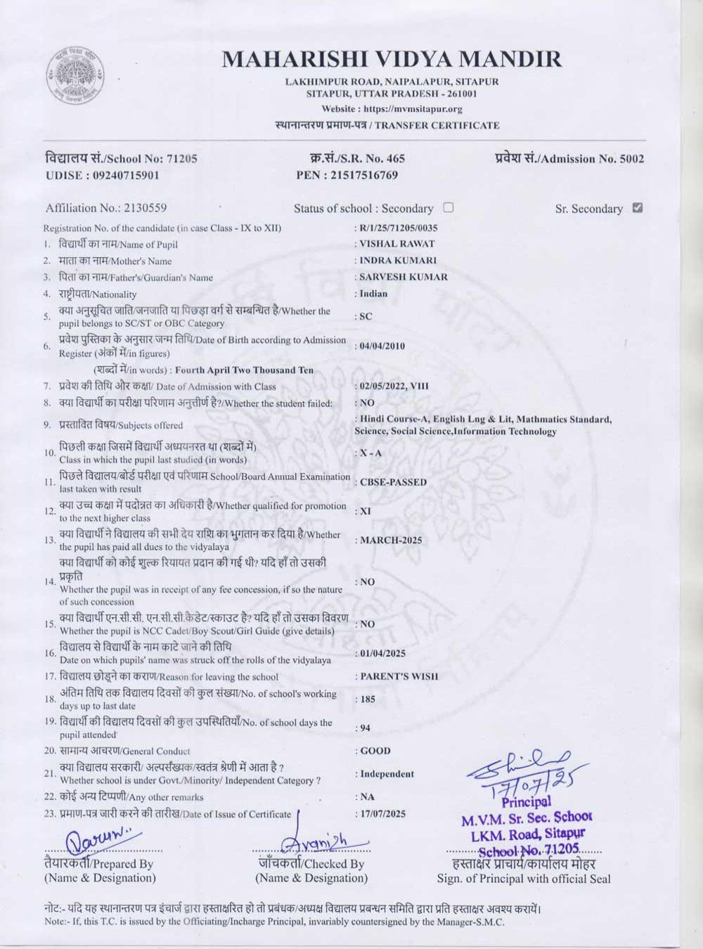 | 27 | 5002 | VISHAL RAWAT | XI | A | |